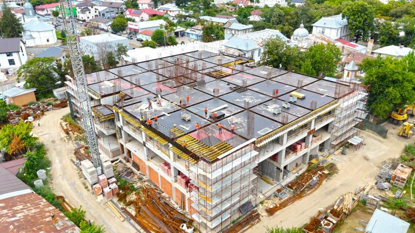 Pe șantierul noului spital din Tecuci se pregătește o nouă etapă importantă - turnarea plăcii celui de-al treilea etaj al viitoarei unități medicale.